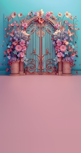 Tło fotograficzne: Furta z kwiatami w różowych, fioletowych i turkusowych barwach - Kwiaty - F30
