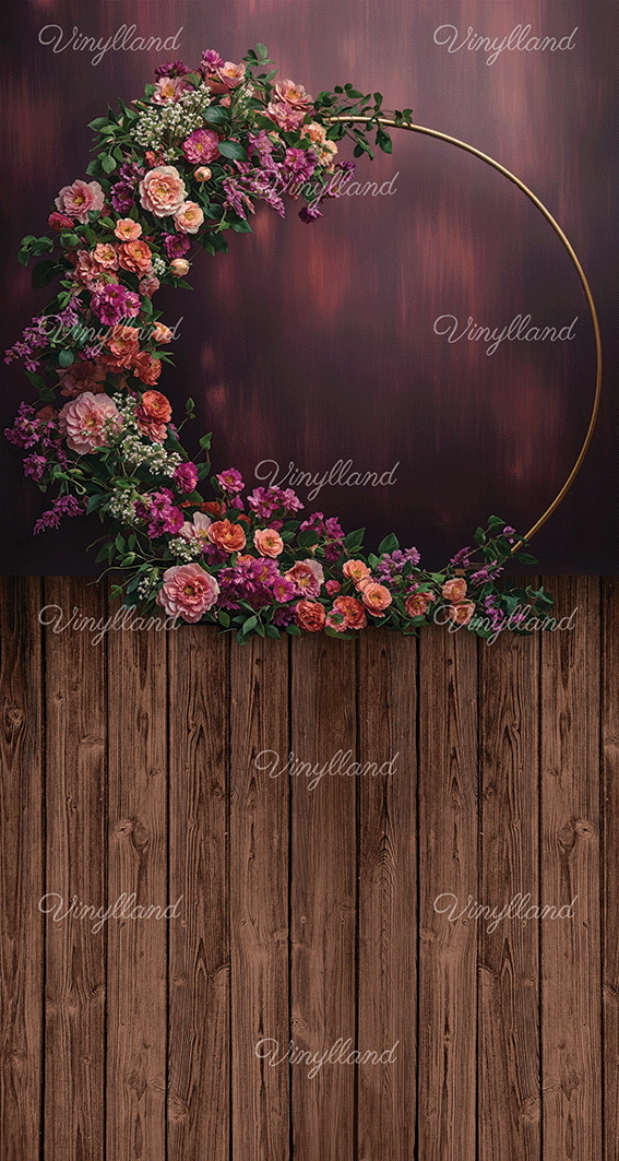 Tło fotograficzne: Instalacja z kwiatów na bordowym tle - Kwiaty - F33