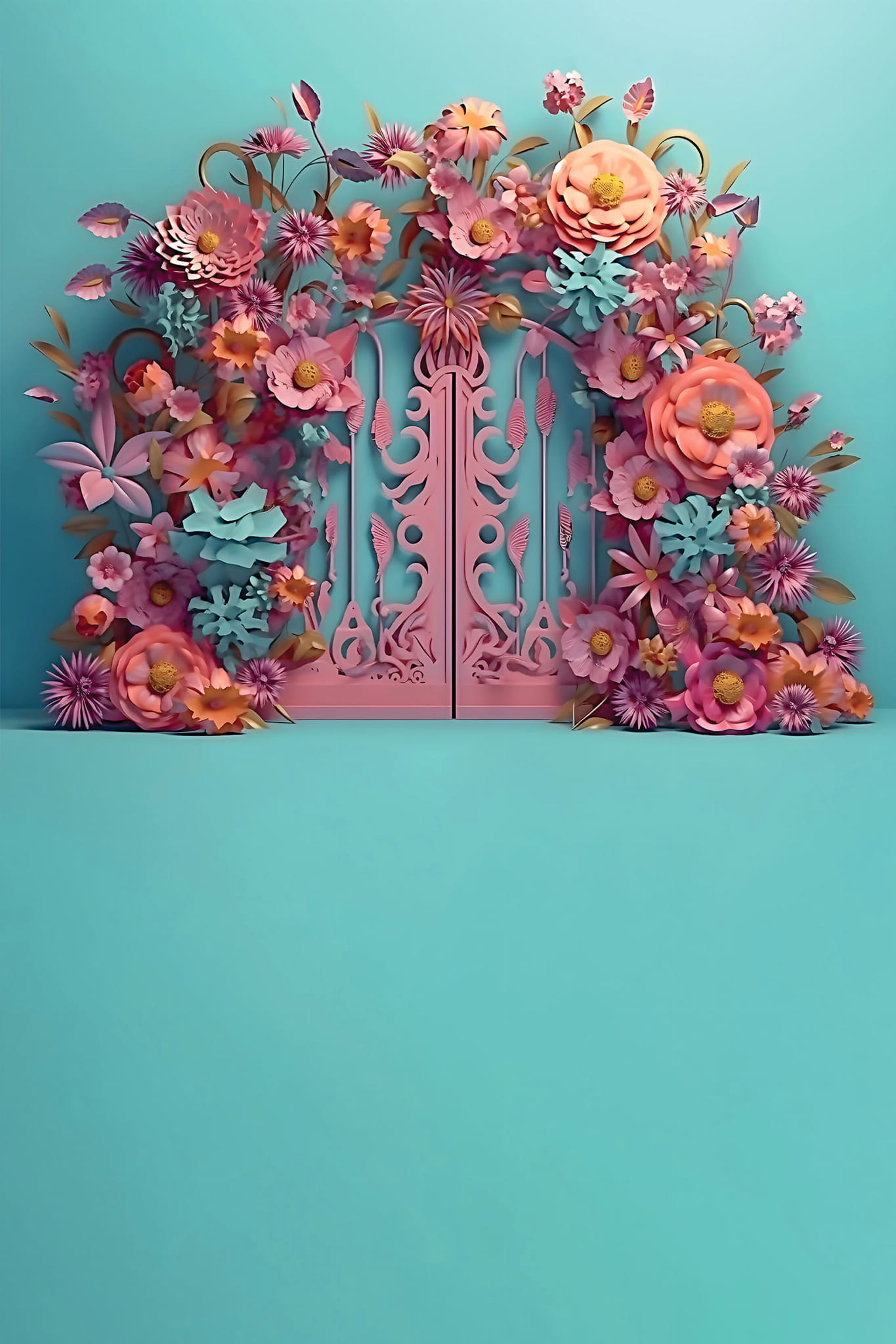 Kup nasze tło fotograficzne "Ukwiecona brama na turkusowym tle F28" i twórz piękne kadry!